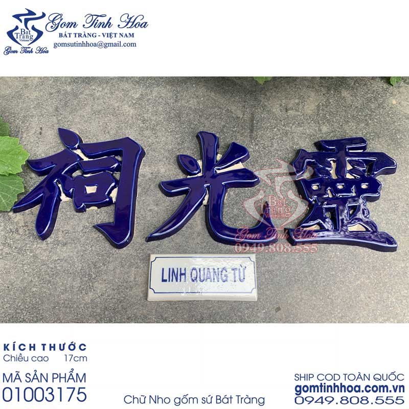 Quý khách có nhu cầu đặt làm chữ Nho gốm sứ - Chữ Hán Nôm bằng sứ, chữ Quốc Ngữ bằng gốm sứ, Câu đối gốm sứ, Hoành phi gốm sứ , chữ biển hiệu bằng gốm sứ... để tôn tạo đình đền chùa, phục dựng từ đường, trang trí sân vườn, trang trí không gian thờ cúng tâm linh khác hoặc mua các sản phẩm Gốm Tinh Hoa Bát Tràng Online với dịch vụ ship Cod Toàn Quốc, nhận hàng và trả tiền tại nhà vui lòng liên hệ: