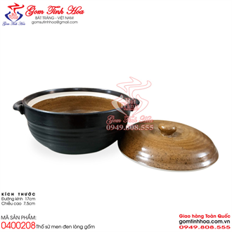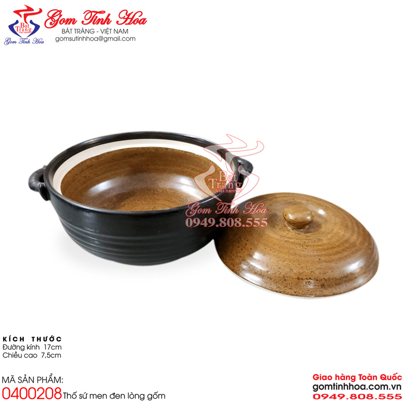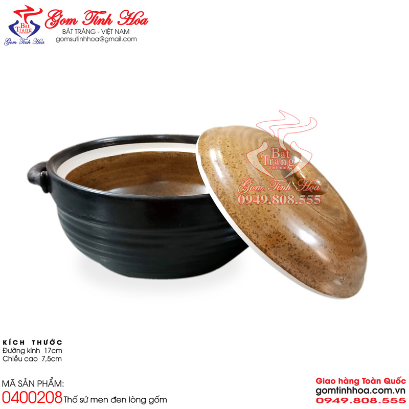 Thố sứ có nắp men đen lòng gốm Gốm sứ Bát Tràng cao cấp. Thố sứ đẹp, mặt ngoài tráng men đen, lòng và nắp tráng men gốm theo phong cách Bát đĩa nhà hàng Nhật Bản. Thố sứ có công dựng đựng cơm, đựng canh và đựng ăn thức ăn tiện lợi. Sản phẩm thân thiện môi trường, trực tiếp đựng thức ăn quay trong lò vi sóng. Sản phẩm có nguồn gốc xuất xứ Bát Tràng và được cung cấp sỉ lẻ bởi Gốm Tinh Hoa Bát Tràng.