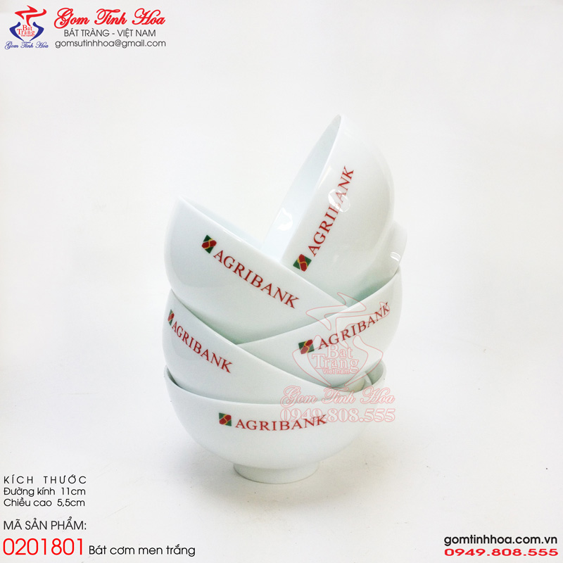 Bát ăn cơm in logo quà tặng Công ty Bát Tràng Gốm Tinh Hoa