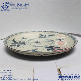 Đĩa sứ men rạn cổ 30cm vẽ chuồn khoai