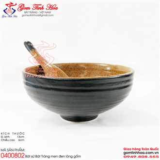 Bát ăn chè kèm thìa sứ men đen lòng gốm
