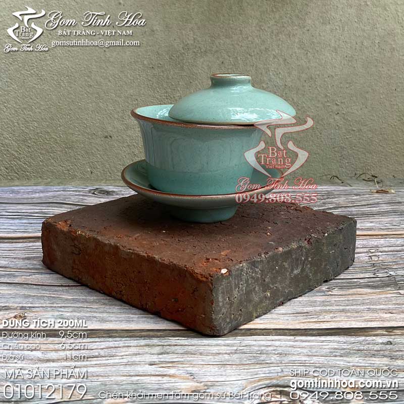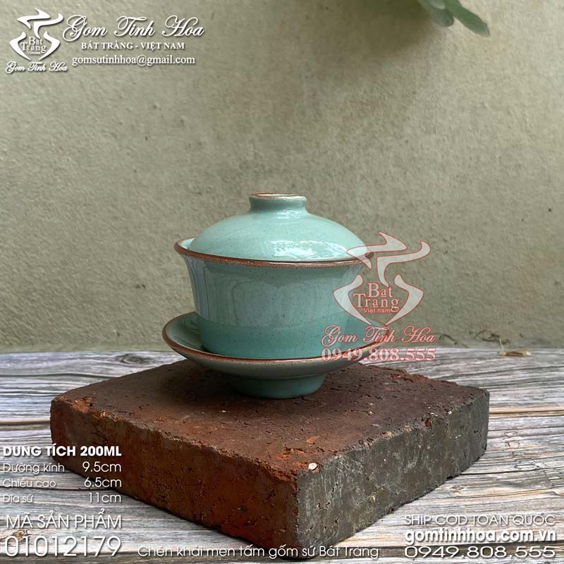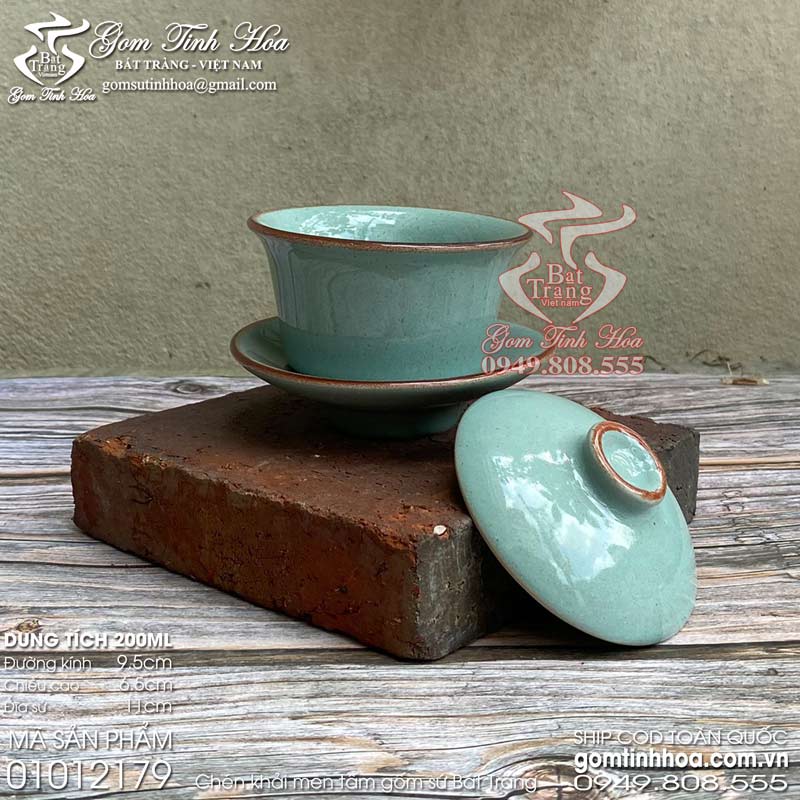 Cốc trà cung đình gốm sứ men tấm màu xanh ngọc Gốm sứ Bát Tràng cao cấp. Ly cốc uống trà đẹp, chất liệu gốm sứ cao cấp, màu men tấm tươi sáng, bắt mắt. Bộ sản phẩm gồm 3 phần: ly cốc uống trà, nắp sứ và đĩa sứ cùng màu, cùng chất liệu. Sản phẩm có nguồn gốc xuất xứ Bát Tràng và được cung cấp sỉ lẻ bởi Gốm Tinh Hoa Bát Tràng.