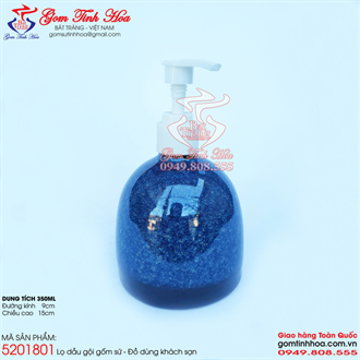 www.gomtinhhoa.com.vn - Lọ đựng dầu gội bằng gốm sứ men hỏa biến gốm sứ Bát Tràng cao cấp. Giá bán lọ đựng dầu gội bằng gốm sứ, giá bán lọ đựng xà phòng bằng gốm sứ, giá bán lọ đựng sữa tắm bằng gốm sứ, giá bán lọ đựng nước rửa tay bằng gốm sứ... niêm yết tại website Công ty Bát Tràng Gốm Tinh Hoa. Đặt sản xuất đồ dùng phòng tắm, đồ dùng khách sạn; mua sỉ lẻ sản phẩm Gốm Tinh Hoa Bát Tràng Online ship COD Toàn quốc liên hệ Hotline/ Zalo 0949808555