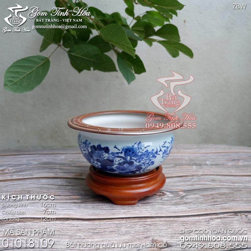 Bát hương quả lựu men lam cổ vẽ hoa sen Gốm Tinh Hoa Bát Tràng