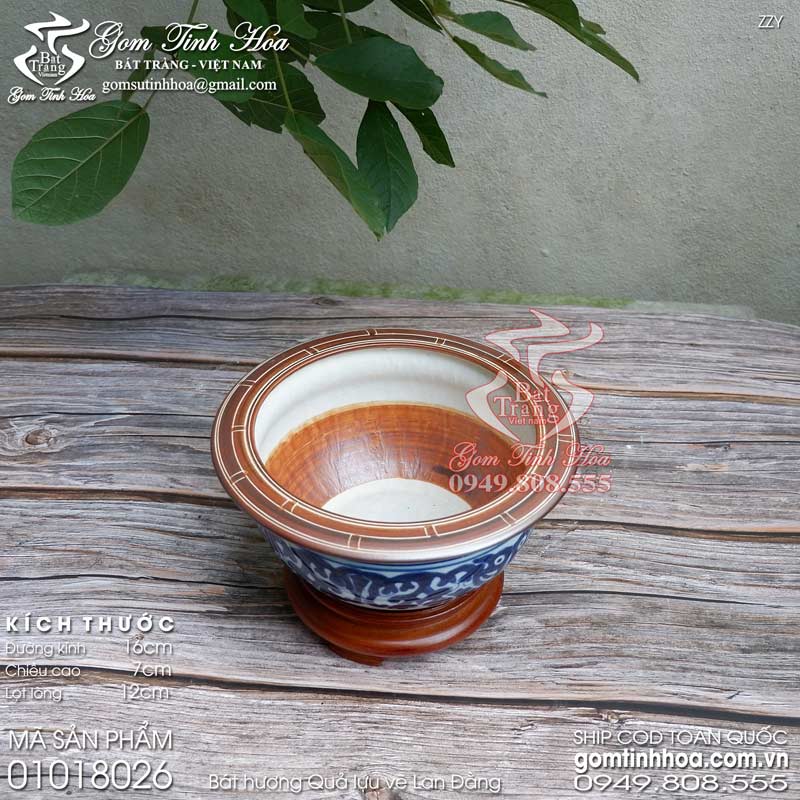 Bát hương quả lựu men lam cổ đường kính 16cm vẽ Lan Đằng gốm sứ Bát Tràng cao cấp. Bát hương dáng cổ, chất liệu gốm sứ cao cấp, họa tiết hoa văn 100% vẽ tay. Sản phẩm có nguồn gốc xuất xứ Bát Tràng và được cung cấp sỉ lẻ bởi Gốm Tinh Hoa Bát Tràng.