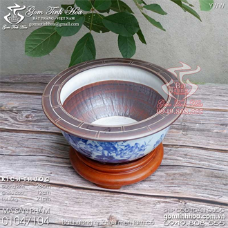 Bát hương quả lựu men lam cổ vẽ hoa sen Gốm Tinh Hoa Bát Tràng