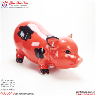 Lợn tiết kiệm dáng lợn tròn má phính men đỏ