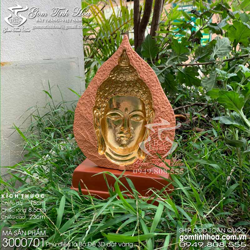 www.gomtinhhoa.com.vn - Phù điêu 3D Lá Bồ Đề hình Đức Phật dát vàng gốm tử sa Bát Tràng cao cấp. Giá bán tượng Phù điêu dát vàng, giá bán phù điêu 3D bằng gốm, giá bán tượng Phật 3D dát vàng, giá bán Lá Bồ Đề dát vàng, giá bán phù điêu lá bồ đề... niêm yết tại website Gốm sứ Tinh Hoa Bát Tràng. Mua sản phẩm Gốm Tinh Hoa Bát Tràng Online ship cod Toàn quốc liên hệ Hotline/ Zalo: 0949808555