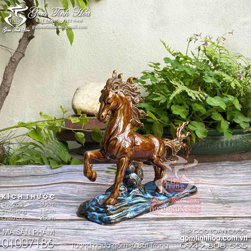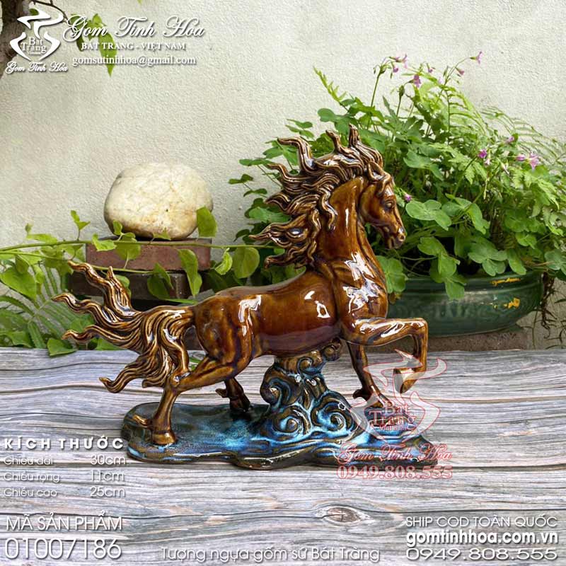Tượng ngựa gốm sứ - Linh vật phong thủy Bính Ngọ 2026 gốm sứ Bát Tràng cao cấp. Tượng ngựa đẹp, chất liệu gốm sứ cao cấp, màu men da lươn đặc sắc. Sản phẩm có nguồn gốc xuất xứ Bát Tràng và được cung cấp bởi Gốm Tinh Hoa Bát Tràng.