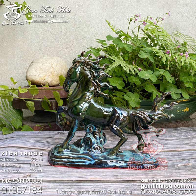 Tượng ngựa gốm sứ - Linh vật phong thủy Bính Ngọ 2026 gốm sứ Bát Tràng cao cấp. Tượng ngựa đẹp, chất liệu gốm sứ cao cấp, màu men ngọc lục bảo đặc sắc. Sản phẩm có nguồn gốc xuất xứ Bát Tràng và được cung cấp bởi Gốm Tinh Hoa Bát Tràng.