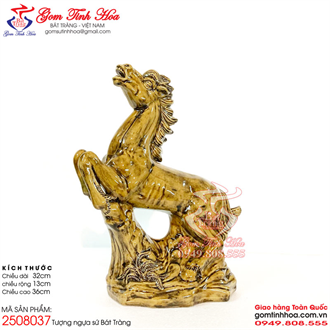 Tượng ngựa phong thủy men nâu vàng gốm sứ Bát Tràng cao cấp. Tượng ngựa đẹp, kiểu dáng oai phong, đường nét chi tiết sắc xảo, sinh động. Sản phẩm có nguồn gốc xuất xứ Bát Tràng và được cung cấp bởi Gốm Tinh Hoa Bát Tràng.